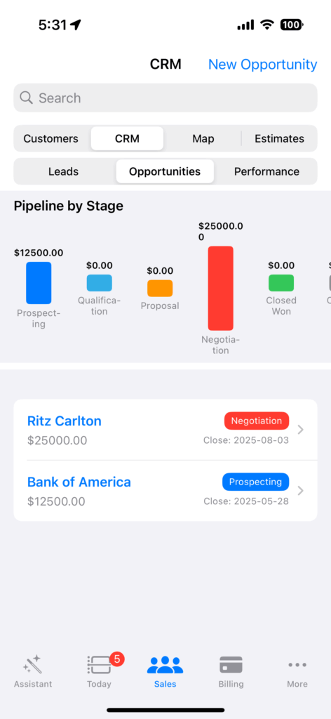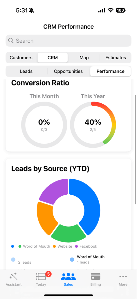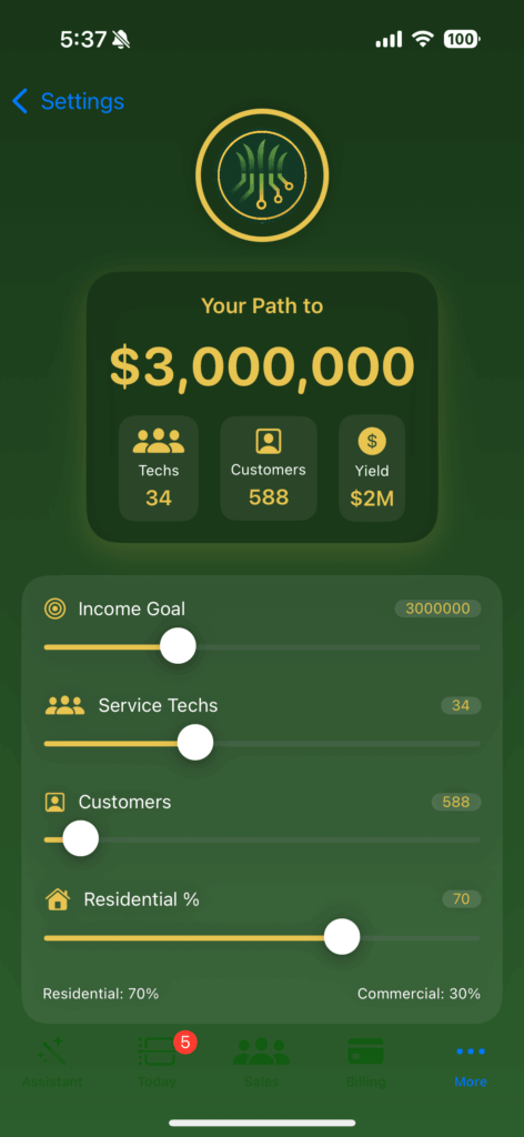 Track today’s revenue, open jobs, and AI follow-ups in real time.